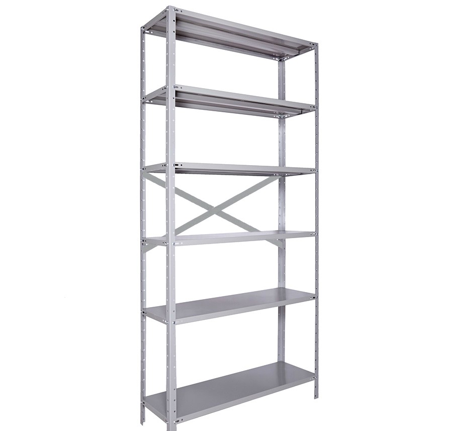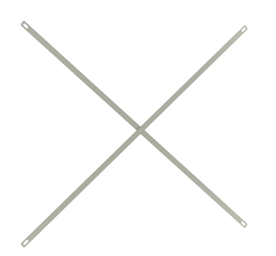 Hastes para reforço em “X” de fundo de estantes com 92 centímetros de largura, produzido em “CHAPA 18” (1,20mm) cor cinza.