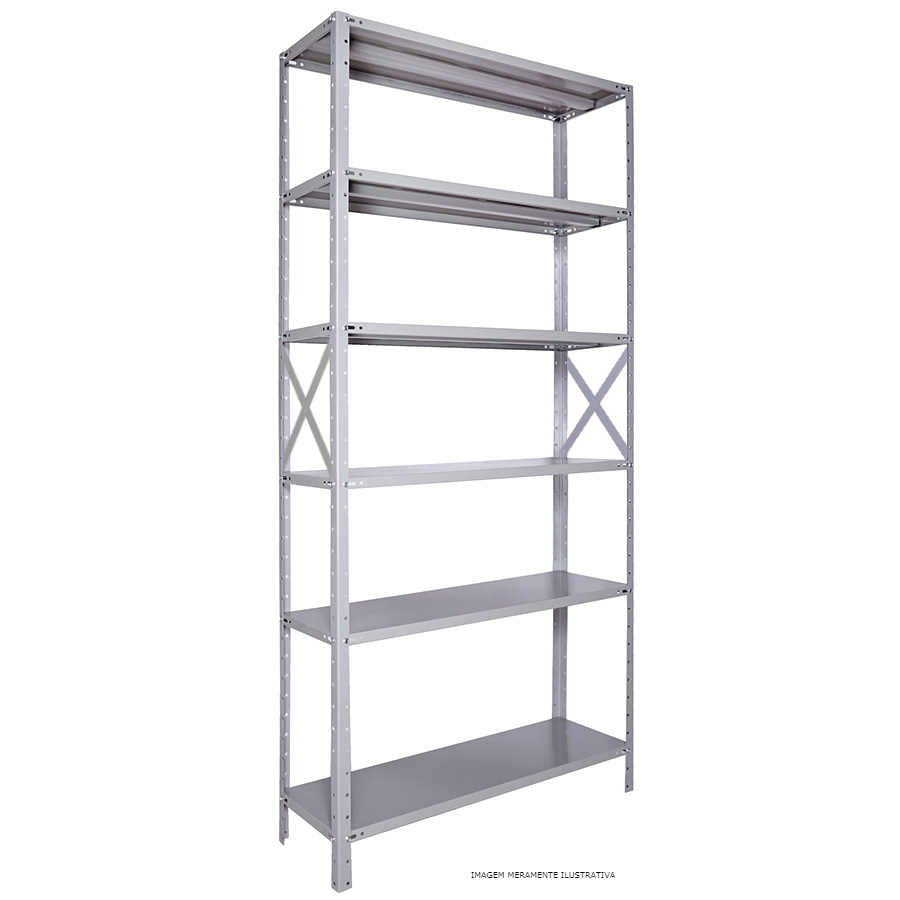 Hastes para reforço em “X” lateral de estantes com 30 centímetros de profundidade, produzido em “CHAPA 18” (1,20mm) cor cinza…