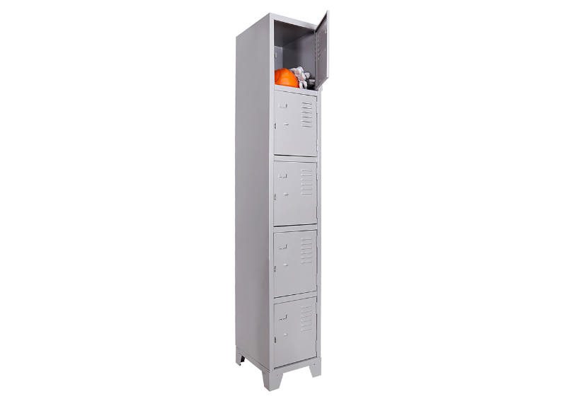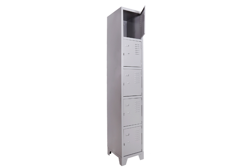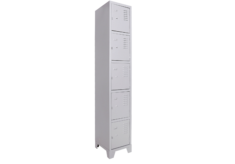 Roupeiro de Aço com 05 Portas Pequenas em “CHAPA 26”com Pitão para Cadeado, ideal para academias, supermercados, empresas e para uso em geral. Possui portas ventiladas e pés elevados.