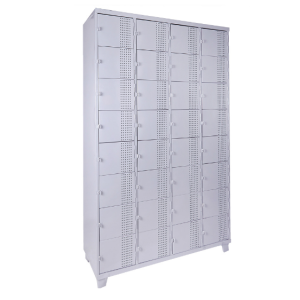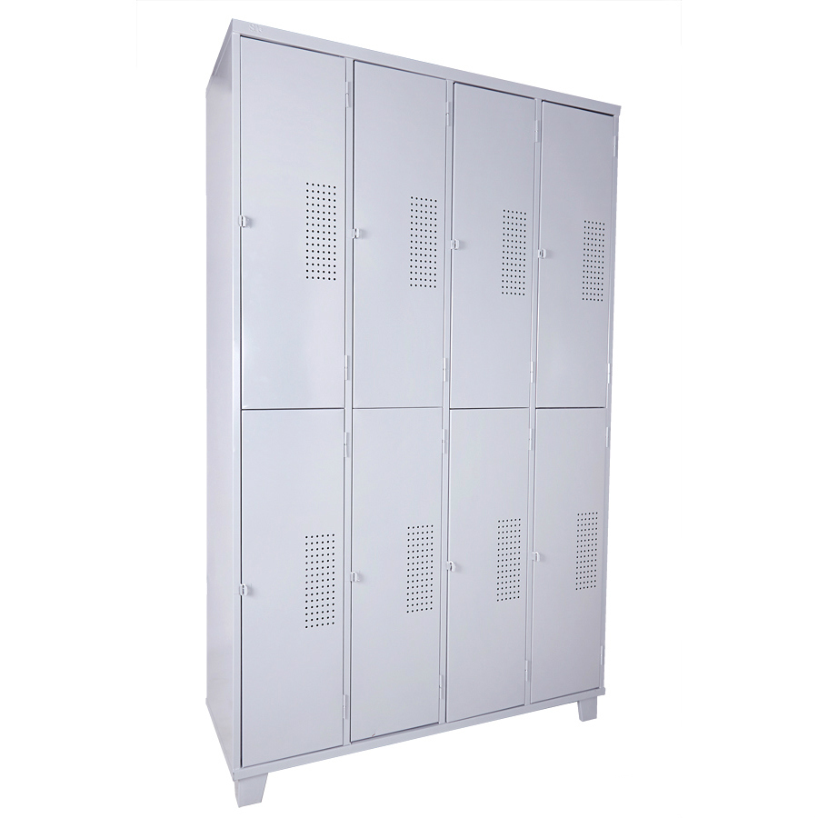 Produzido em Aço 1008 "CERTIFICADO" de alta qualidade com tratamento anti-ferruginoso, em "CHAPA 26" com pés em CHAPA 18, possui 08 Portas em "CHAPA 26" com ventilação. Este armário atende a NR24 (24.2.13) conforme a regulamentação. O acabamento em sistema de pintura eletrostática a alta temperatura a pó (epóxi) também garante maior durabilidade da cor e resistência à ferrugem.