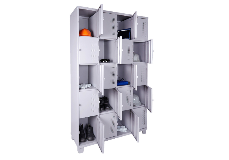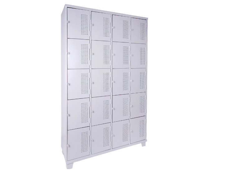 Roupeiro de Aço com 20 portas Pequenas em “CHAPA 26”com Pitão para Cadeado, ideal para academias, supermercados, empresas e para uso em geral. Possui portas ventiladas e pés elevados.